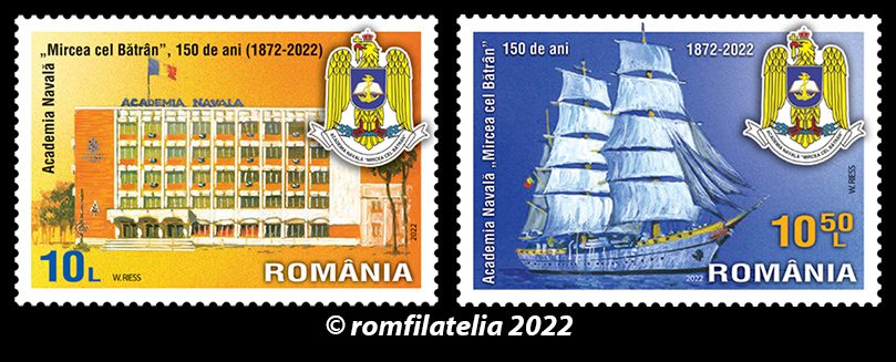 Romfilatelia introduce în circulație joi, 17 noiembrie a.c., emisiunea de mărci poștale Academia Navală „Mircea cel Bătrân”, 150 de ani, dedicată unei instituții emblematice a României, la aniversarea unui secol și jumătate de existență.