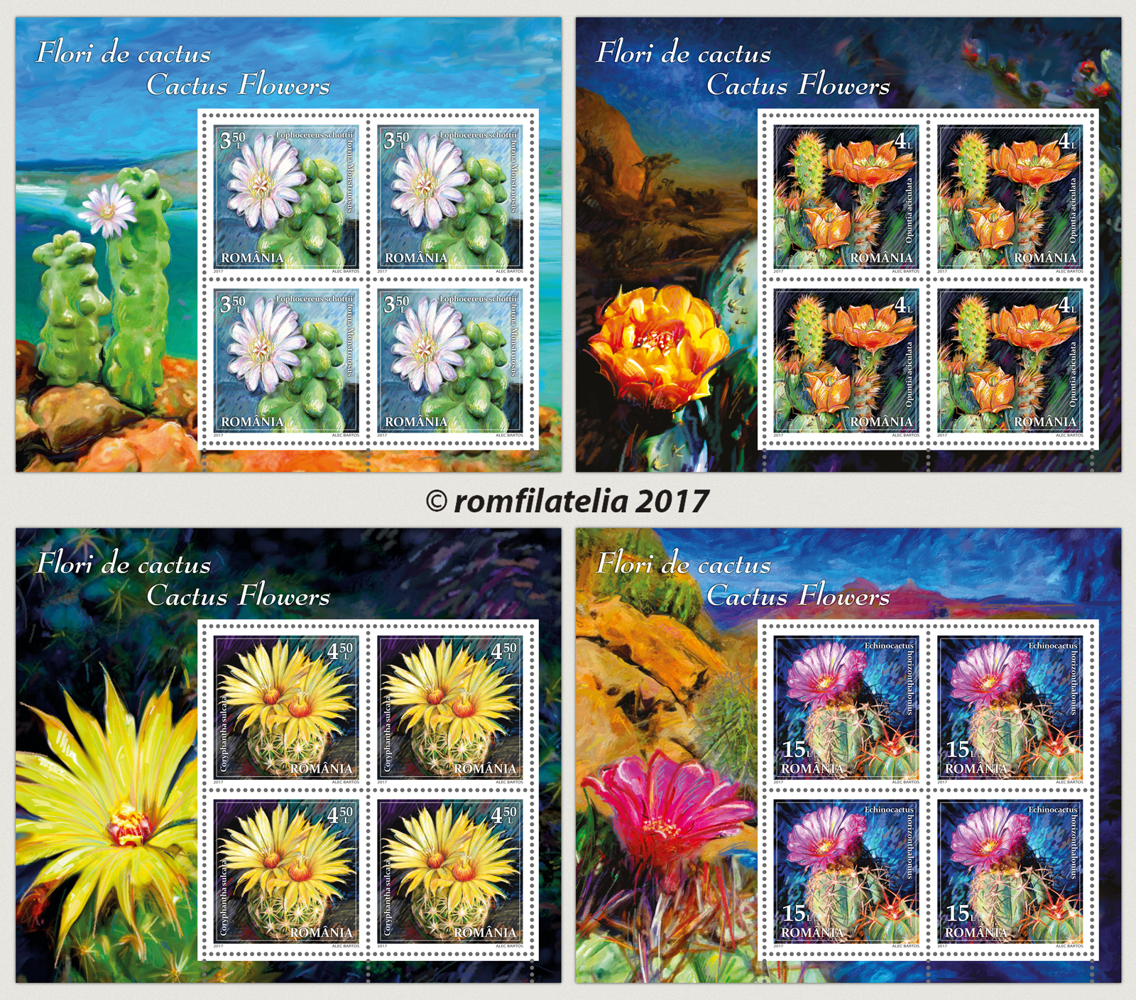 Romfilatelia vine în întâmpinarea pasionaţilor de floră, prin introducerea în circulaţie a emisiunii de mărci poștale FLORI DE CACTUS.