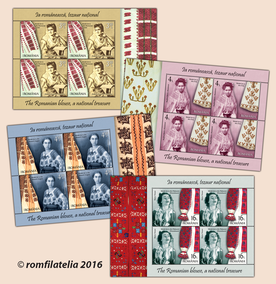 Timbrul cu valoarea nominală de 16 lei o reprezintă pe Maria Tănase în cămaşă din Pădureni, jud. Hunedoara. Doamna cântecului românesc a fost o iubitoare a tradiţiilor româneşti şi a dus ia românească peste hotare, unde a fost admirată şi aplaudată. Maria Tănase poartă o cămaşă într-o combinaţie de culori, alb, negru şi roşu. Pe fondul acestor culori specifice iei de Pădureni apar discret tonuri de mov, albastru deschis şi verde. Ornamentarea iei se face în motive geometrice; romburi mari, pătrate, jumătăţi de romburi, care se succed compact, pe întreaga mânecă dând cusăturii un aspect bogat, reliefat.