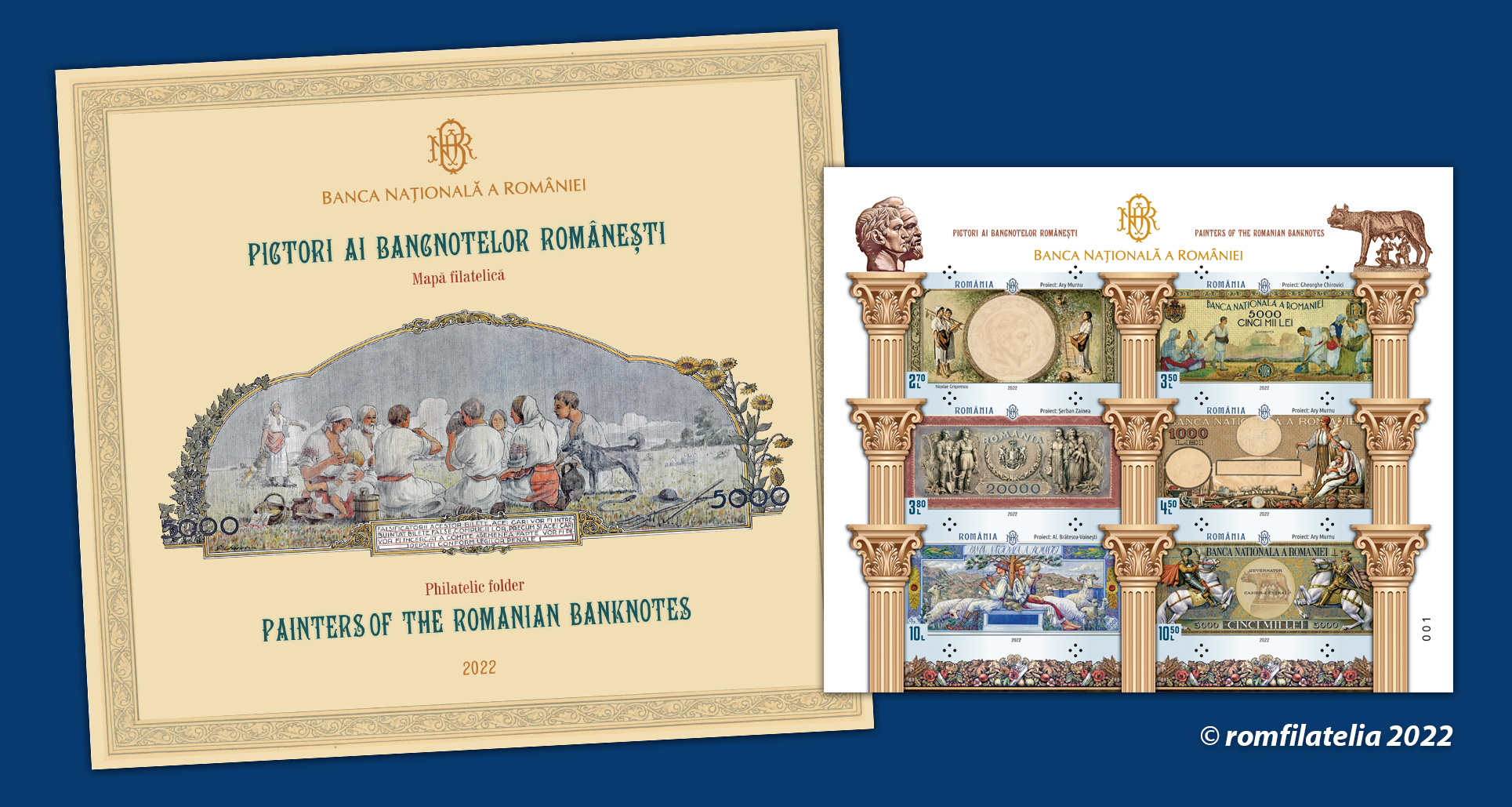 Mapă filatelică PICTORI AI BANCNOTELOR ROMÂNEȘTI
