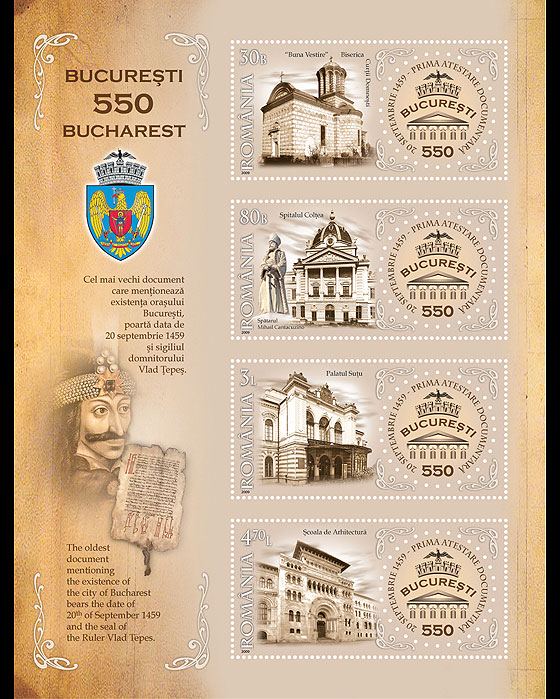 Bloc 4 timbre BUCUREȘTI – 550 DE ANI