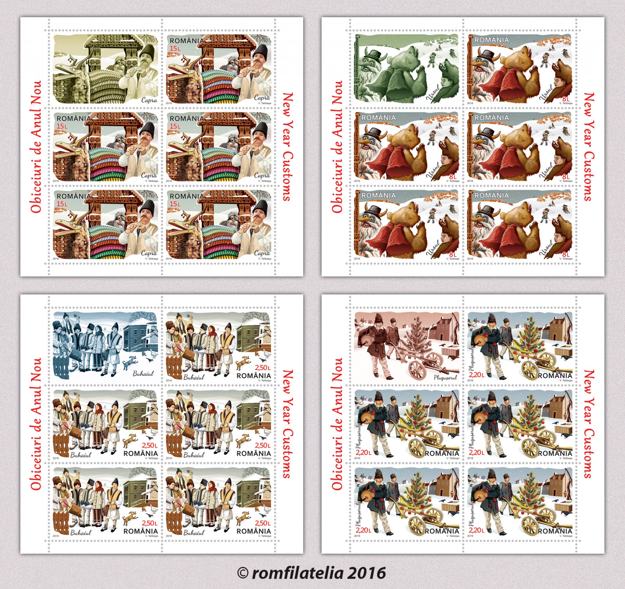Lista tradiţiilor şi a obiceiurilor româneşti cuprinde pe lângă colinde, jocuri cu măşti, alaiuri, teatru popular şi dansuri specifice finalului de an. Dintre toate acestea, Romfilatelia prezintă în cadrul emisiunii Obiceiuri de Anul Nou, patru mărci poştale ce redau câteva dintre tradiţiile sfârşitului de an, esenţe ale bogăţiei noastre spirituale.