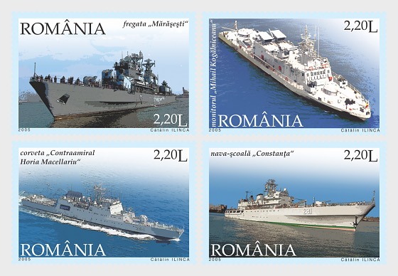 Set 4 valori Ziua Mărcii Poștale Românești – Nave militare românești