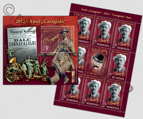 Beside these cultural institutions involved in actions of paying homage to Caragiale, Romfilatelia introduces into circulation a postage stamps issue dedicated to this event 2012 – “Caragiale” Year.
