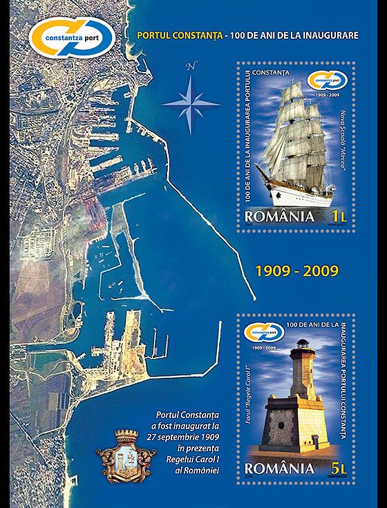 / Block of 2 Stamps CONSTANTA HARBOUR – 100 YEARS SINCE THE INAUGURATION