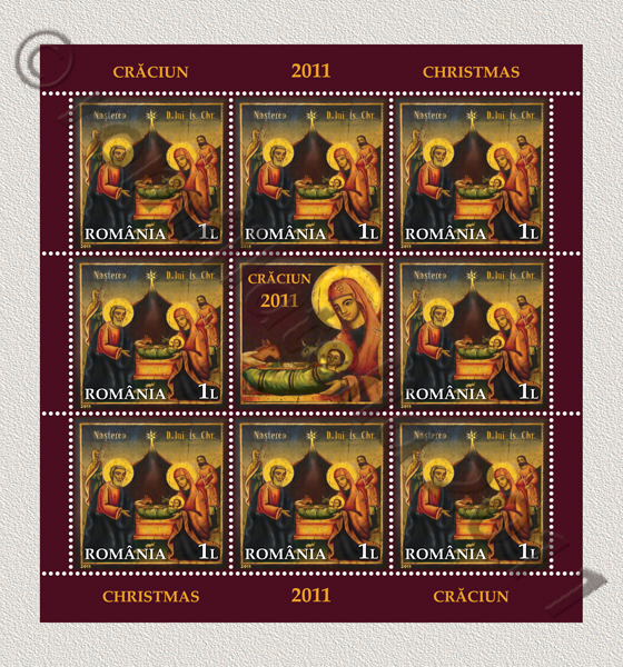 The postage stamp of Christmas 2011 issue illustrates the image of the icon of “Naşterea Domnului Iisus Hristos“ (“Our Lord’s Jesus Christ’s Birth”) from the patrimony of the Archdiocese of Tomis (“Înălţarea Domnului” / “Our Lord’s