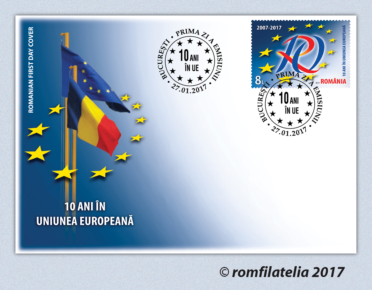 First day cover 10 YEARS, ROMANIA IN THE EUROPEAN UNION