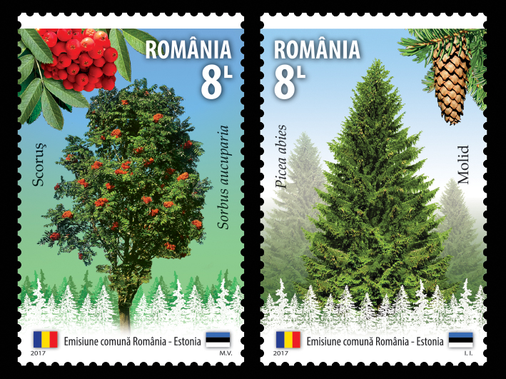 JOINT STAMP ISSUE ROMANIA – ESTONIA FOREST SPECIES – Set of 2