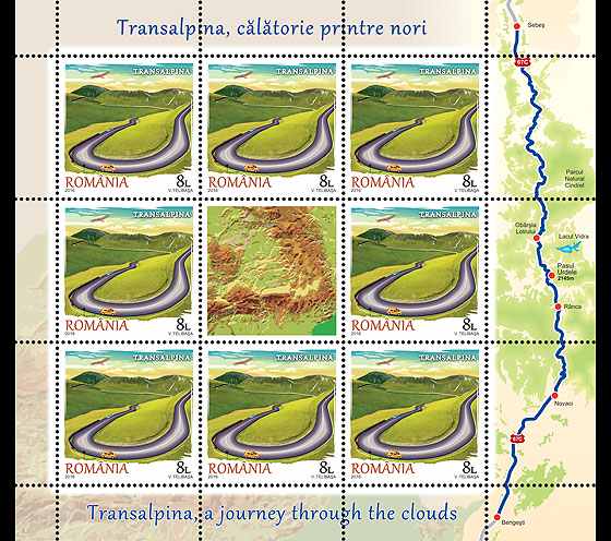 Minisheet of 8 stamps + 1 label TRANSALPINA, A JOURNEY THROUGH THE CLOUDS