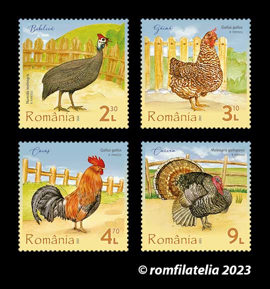 Venind în întâmpinarea dorinţei filateliștilor din ţară dar și din străinătate, Romfilatelia introduce în circulaţie vineri, 18 august a.c., emisiunea de mărci poștale „Păsări de curte”, formată din patru timbre și un plic „prima zi”.
