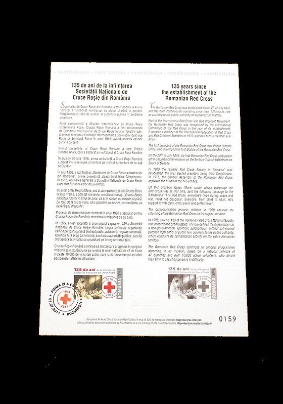 / Philatelic Document 135 years since the establishment of the Romanian Red Cross