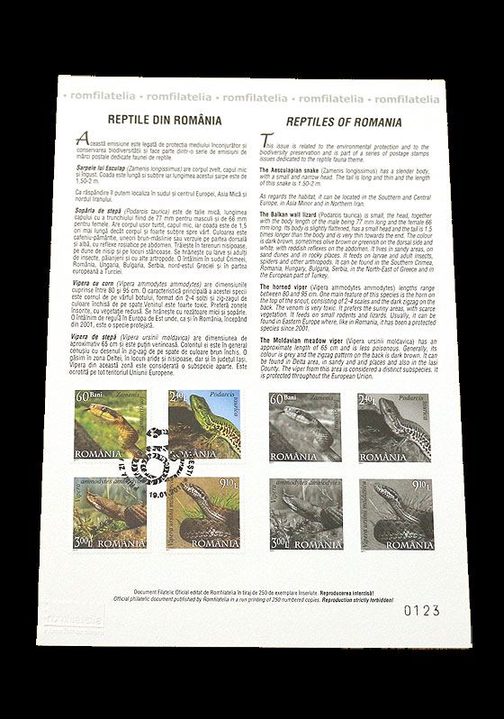 Philatelic Document REPTILES OF ROMANIA