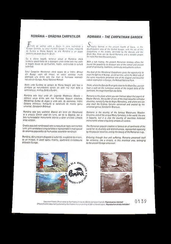 / Philatelic Document ROMANIA – THE CARPATHIAN GARDEN
