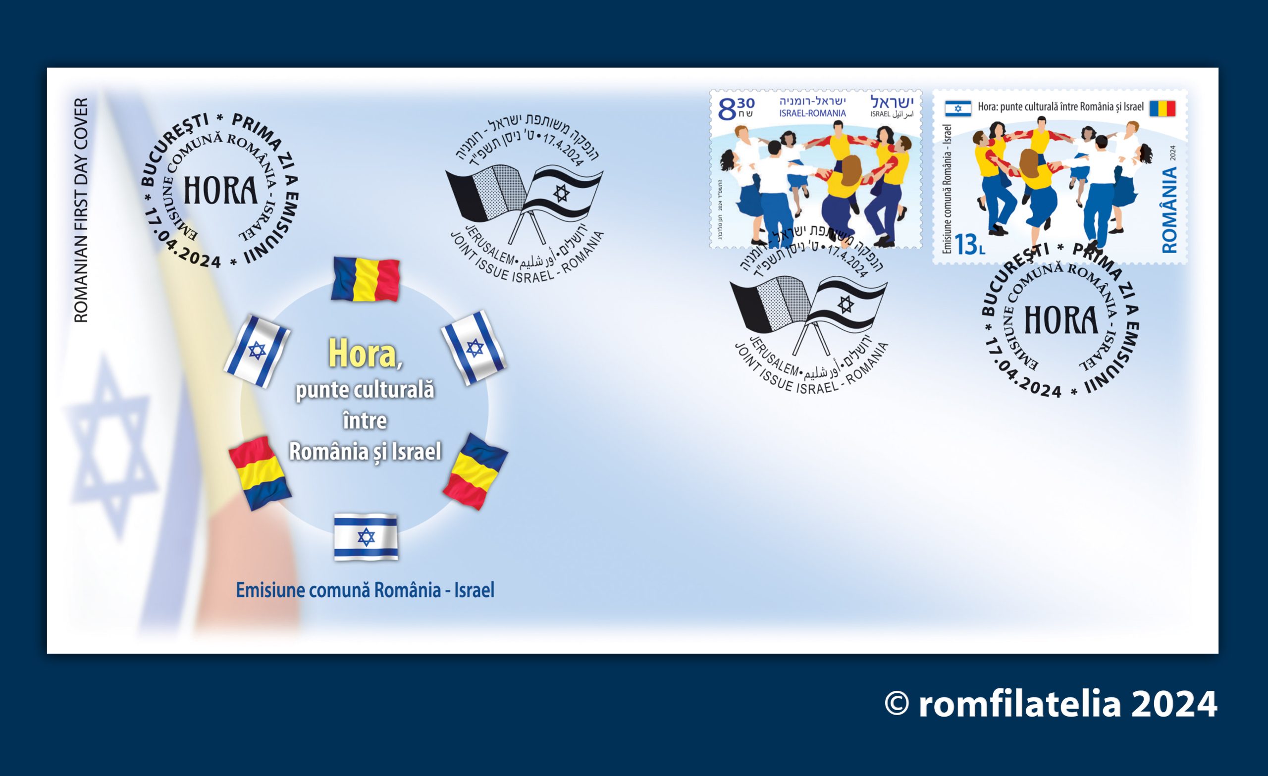 / First Day Cover Emisiune comună ROMÂNIA-ISRAEL HORA, PUNTE CULTURALĂ ÎNTRE ROMÂNIA ȘI ISRAEL