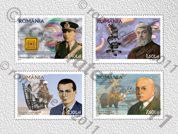 We thank I.M.C.D.I. Cantacuzino, the State Office for Inventions and Trademarks, “Grigore Antipa” Museum of Natural History and Mr. Stefan Odobleja jr. for the documentary assistance granted in the accomplishment of this postage stamps issue.