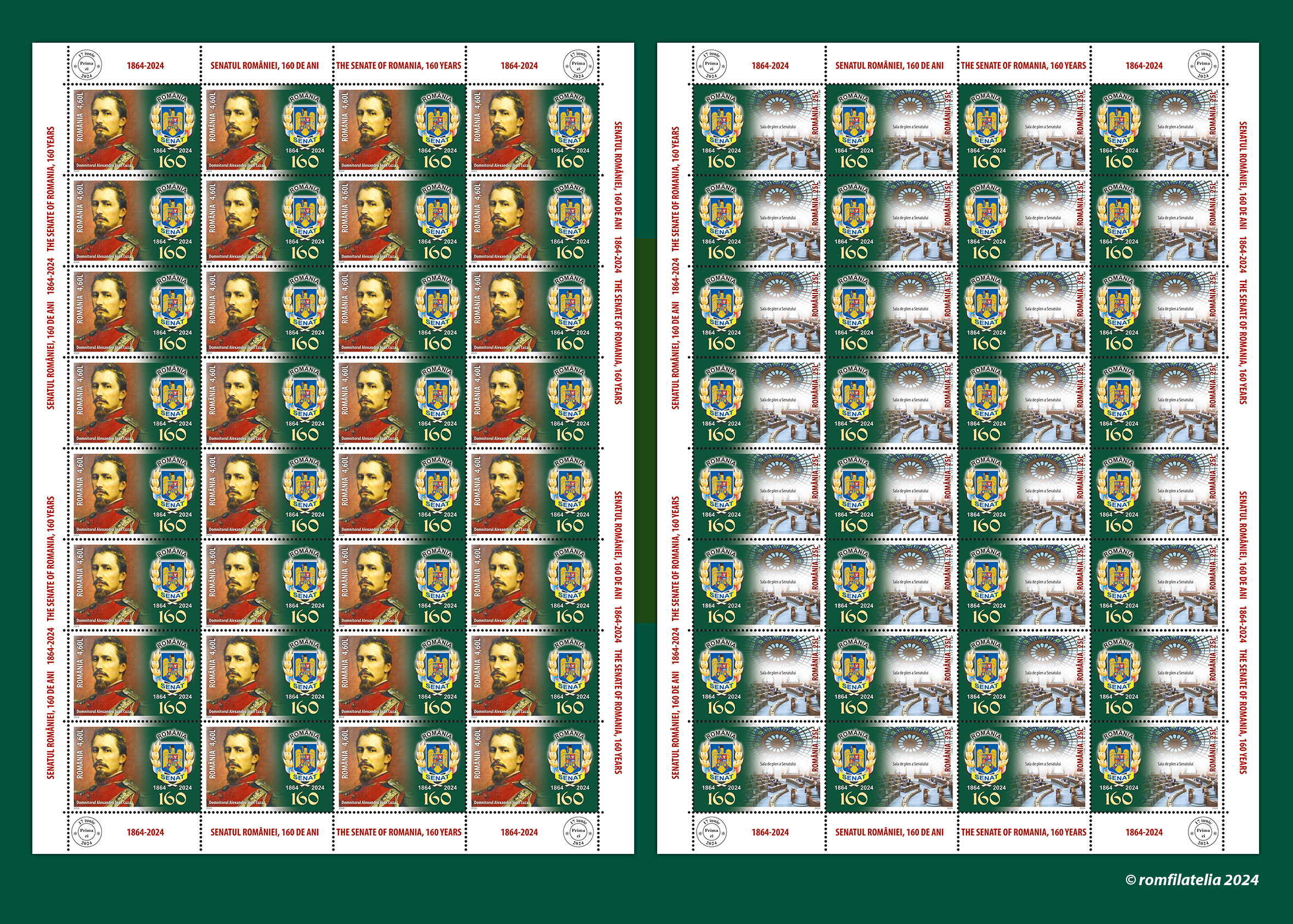 Set coală de 32 de timbre SENATUL ROMÂNIEI, 160 DE ANI