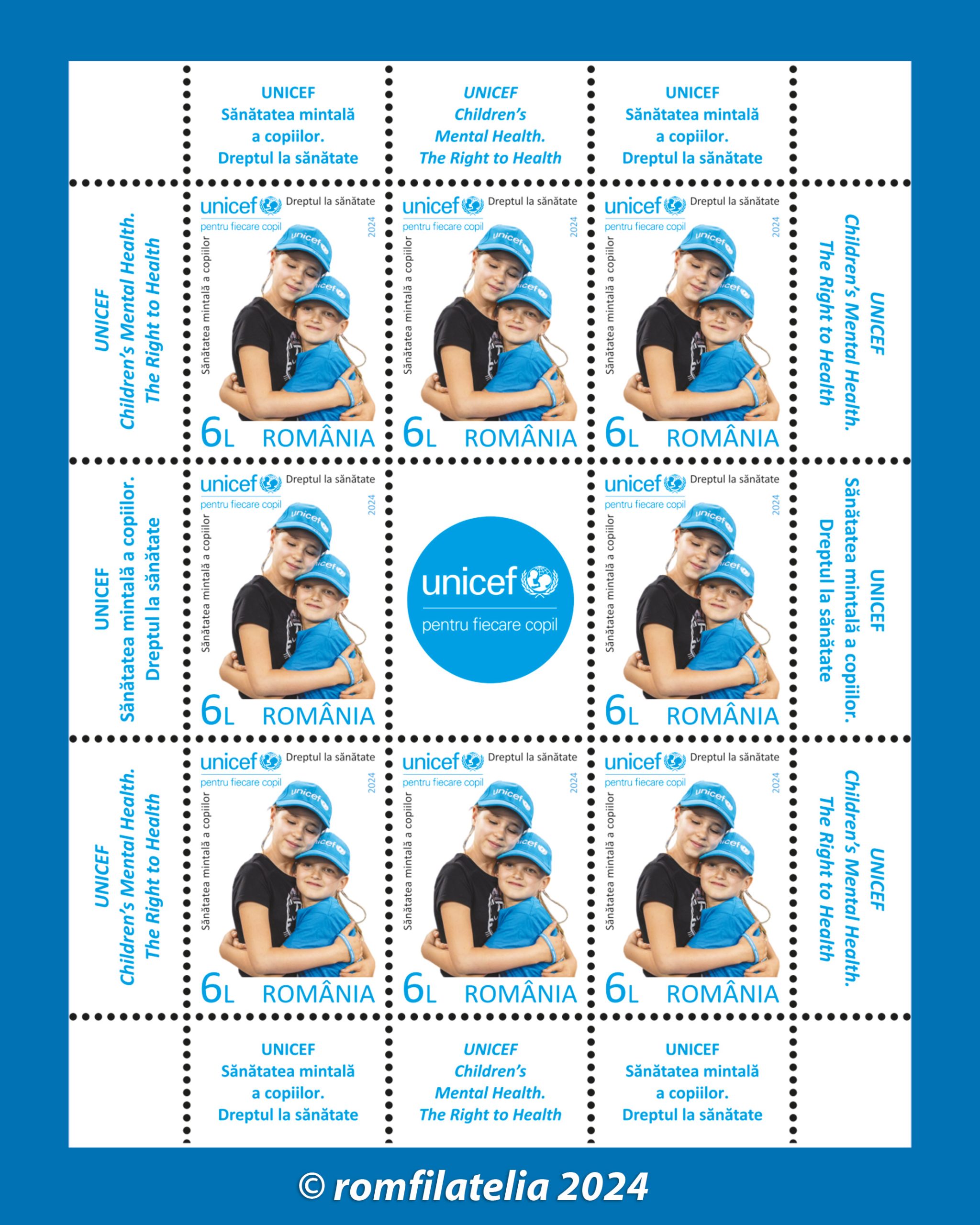 / Set Sheetlets 8 timbre + 1 vinietă UNICEF. Sănătatea mintală a copiilor. Dreptul la sănătate