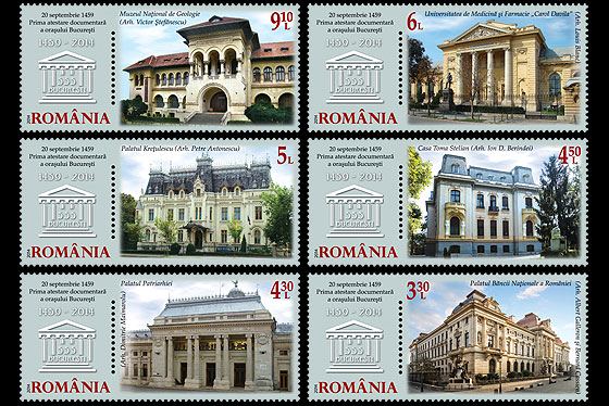 Set of 6 Values BUCHAREST, 555 YEARS OF EXISTENCE