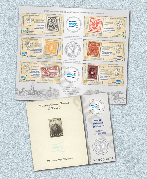 The postage stamps issue dedicated to EFIRO 2008, that Romfilatelia introduces into circulation within EFIRO 2008 events, reunites images of the postage stamps issued between 1858-1932 which have been, at the time, philatelic première themes for Romanian philately.